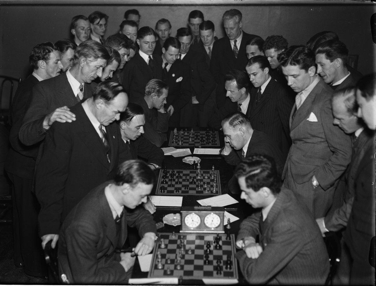 Upsala Nya Tidnings och Schacksällskapets korporationsschackturnering - Arne Eklund "i vinstparti" mot B Dahlin