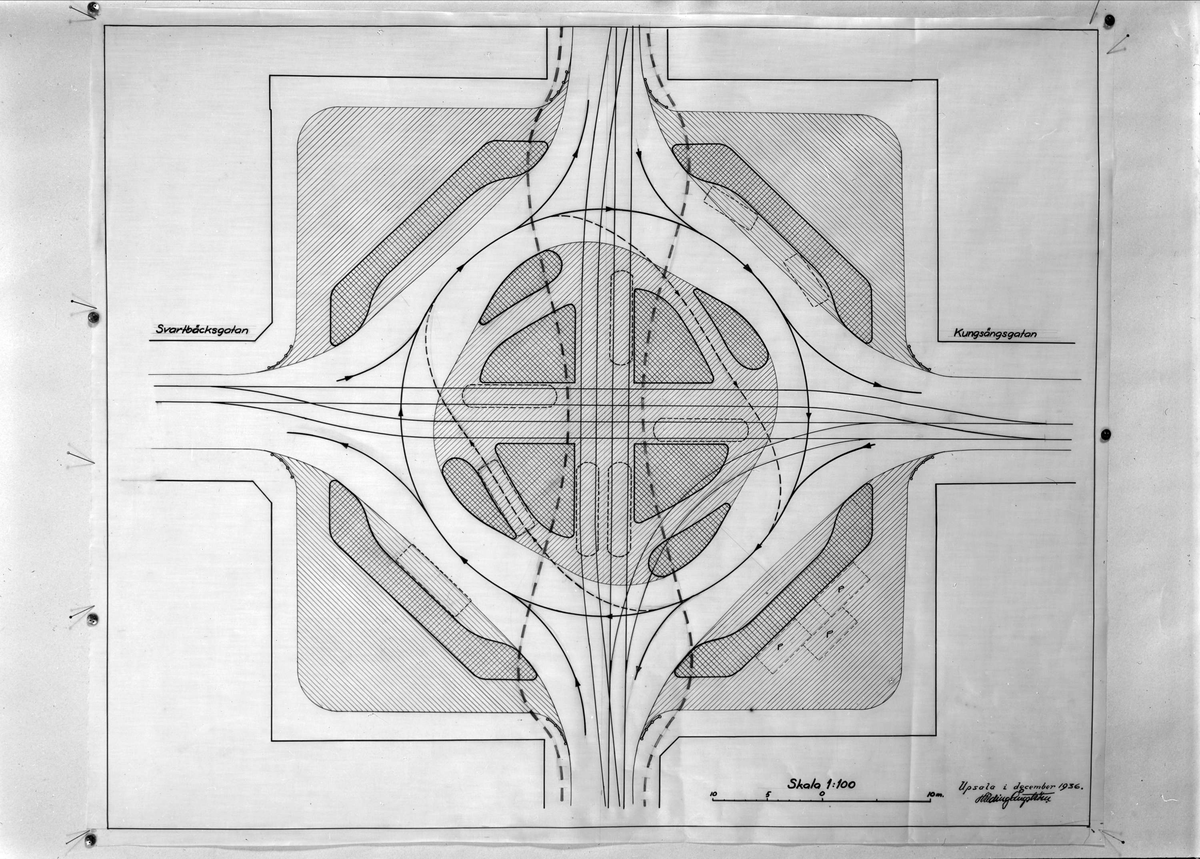Ritning av spårvägsnätet över Stora Torget upprättad i september 1936, Uppsala