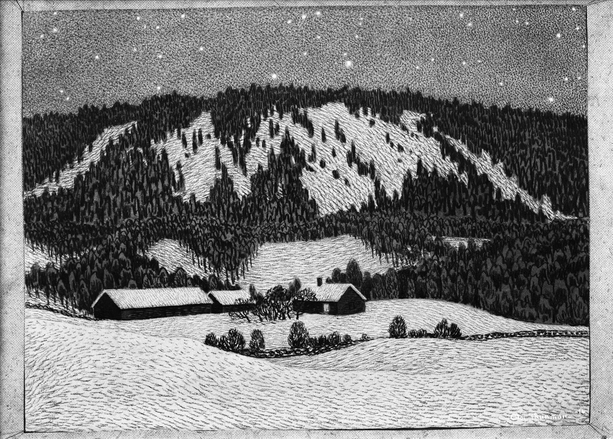 Konstverk - grafiskt blad signerat 1916 av konstnären Olof Thunman