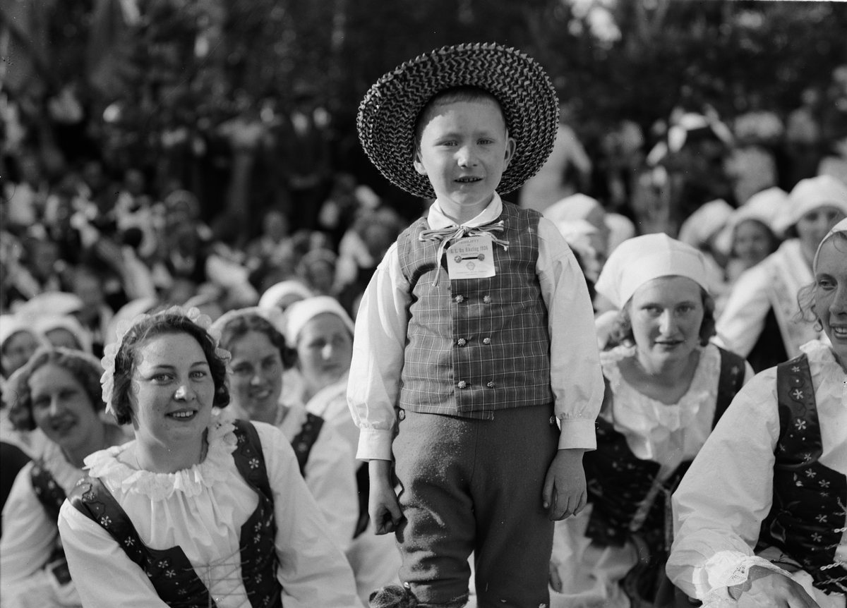 Titel: "Nationalklädda ungdomar" på Svenska Landsbygdens Ungdomsförbunds riksting i Gamla Uppsala