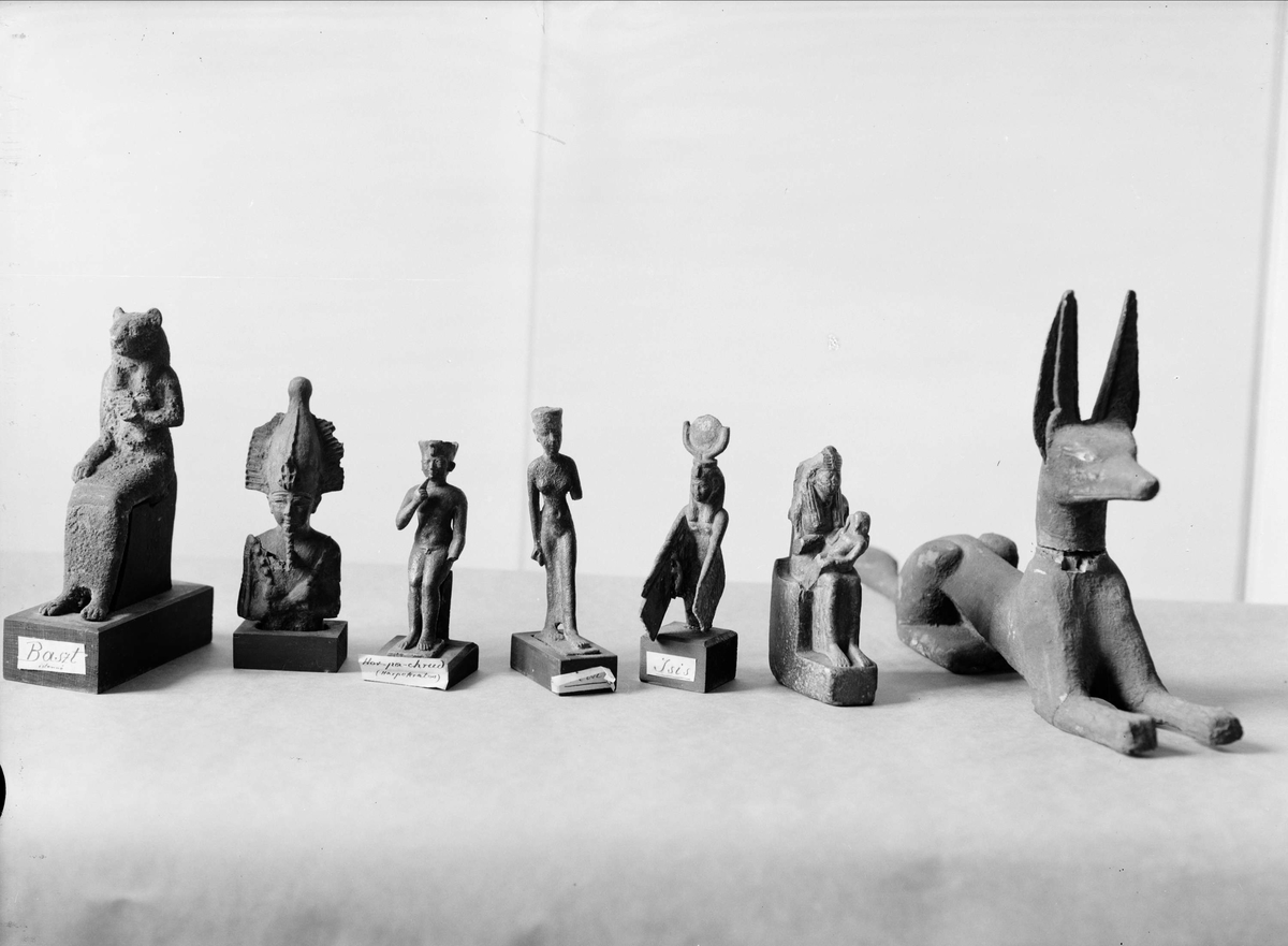 "En serie gudabilder av brons" tillhörande Victoriamuseet för Egyptiska Fornsaker, Gustavianum