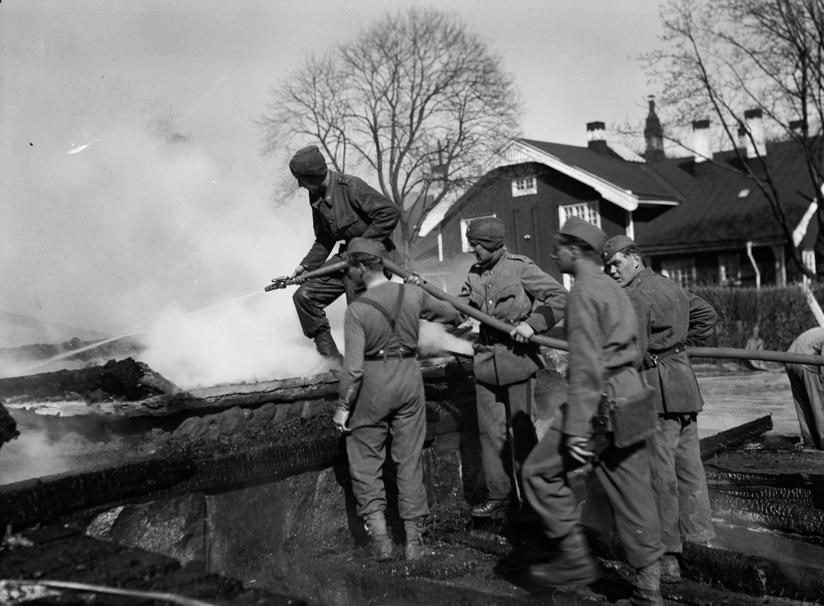 "Släckningsarbetet i södra lägerhyddans ruiner" på Upplands Regemente, I 8