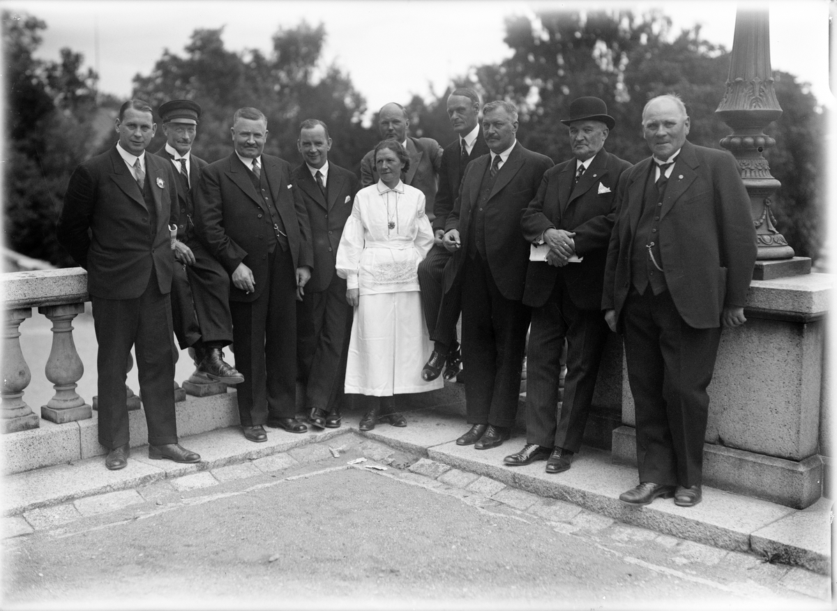 Sveriges Fattigvårds- och Barnavårdsfunktionärers Riksförbunds styrelseledamöter "under en paus i välfärdskongressens arbete", utanför Universitetshuset