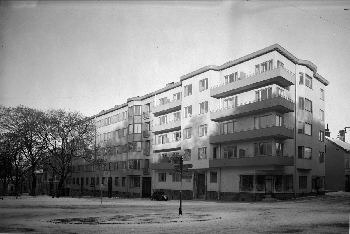 Flerbostadshus, kvarteret Hörnet, Kyrkogårdsgatan, Uppsala december 1939