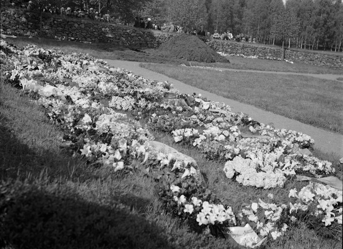Kransar på kyrkogården vid Lena kyrka - friherre Fredrik von Essens jordfästning