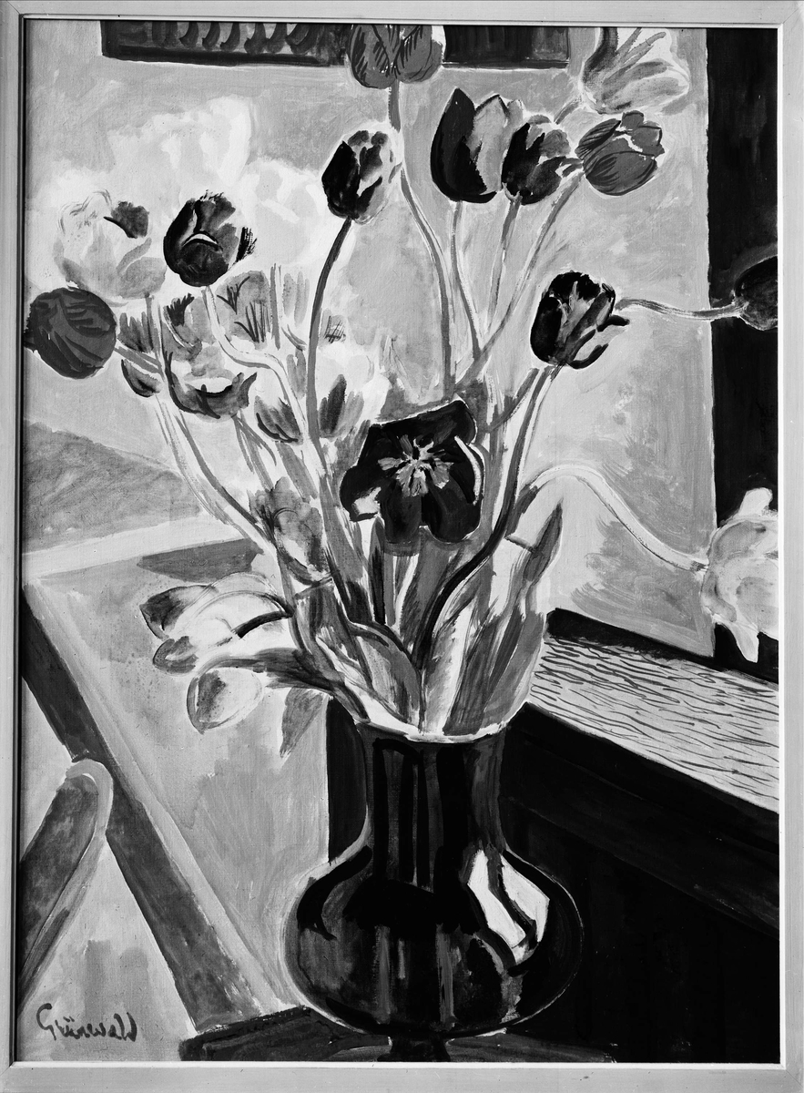 Oljemålning av konstnären Isaac Grünewald på utställning, Östgöta nation, Uppsala 1943