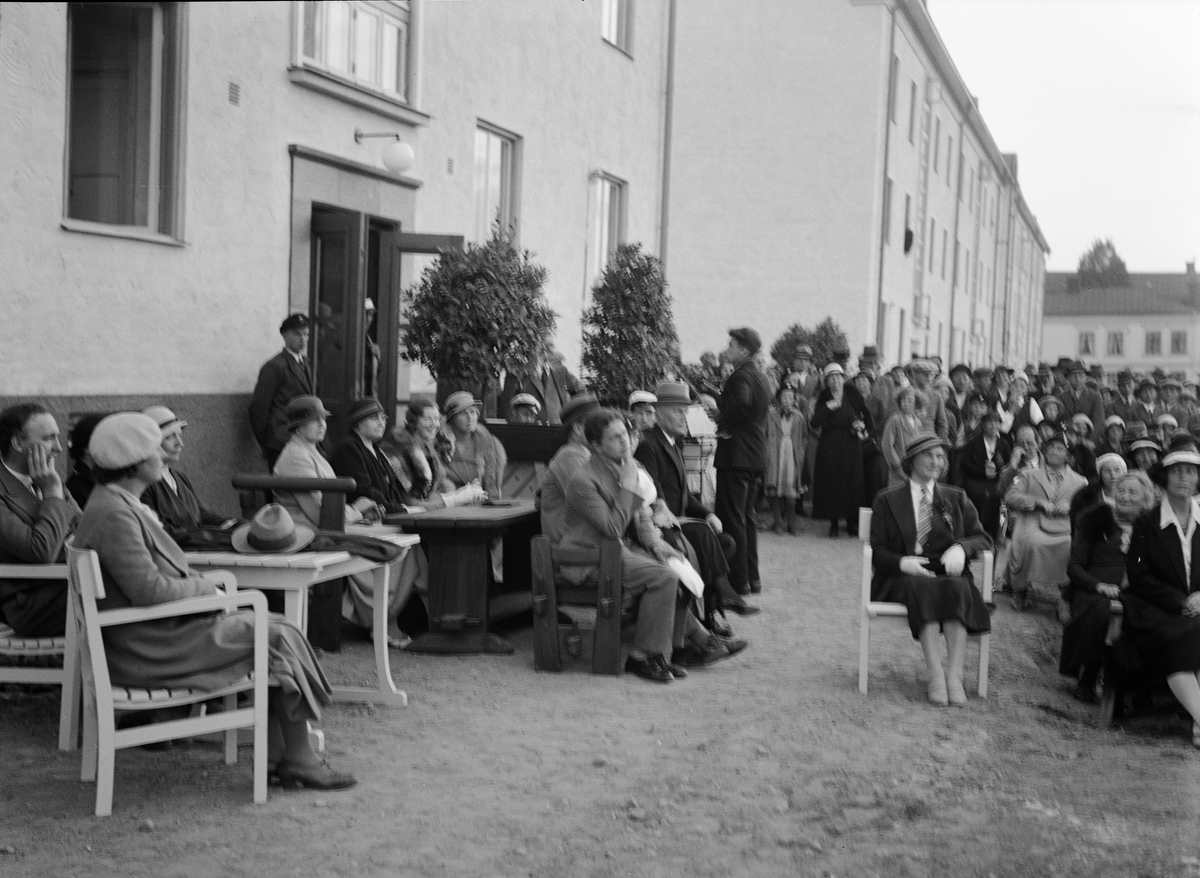 "Utställningens öppnande ägde rum kl. 5 på eftermiddagen på själva gatan, där bänkar och stolar voro utplacerade" - ingenjör Anders Diös hemutställning i kvarteret Ydal, Kvarngärdet