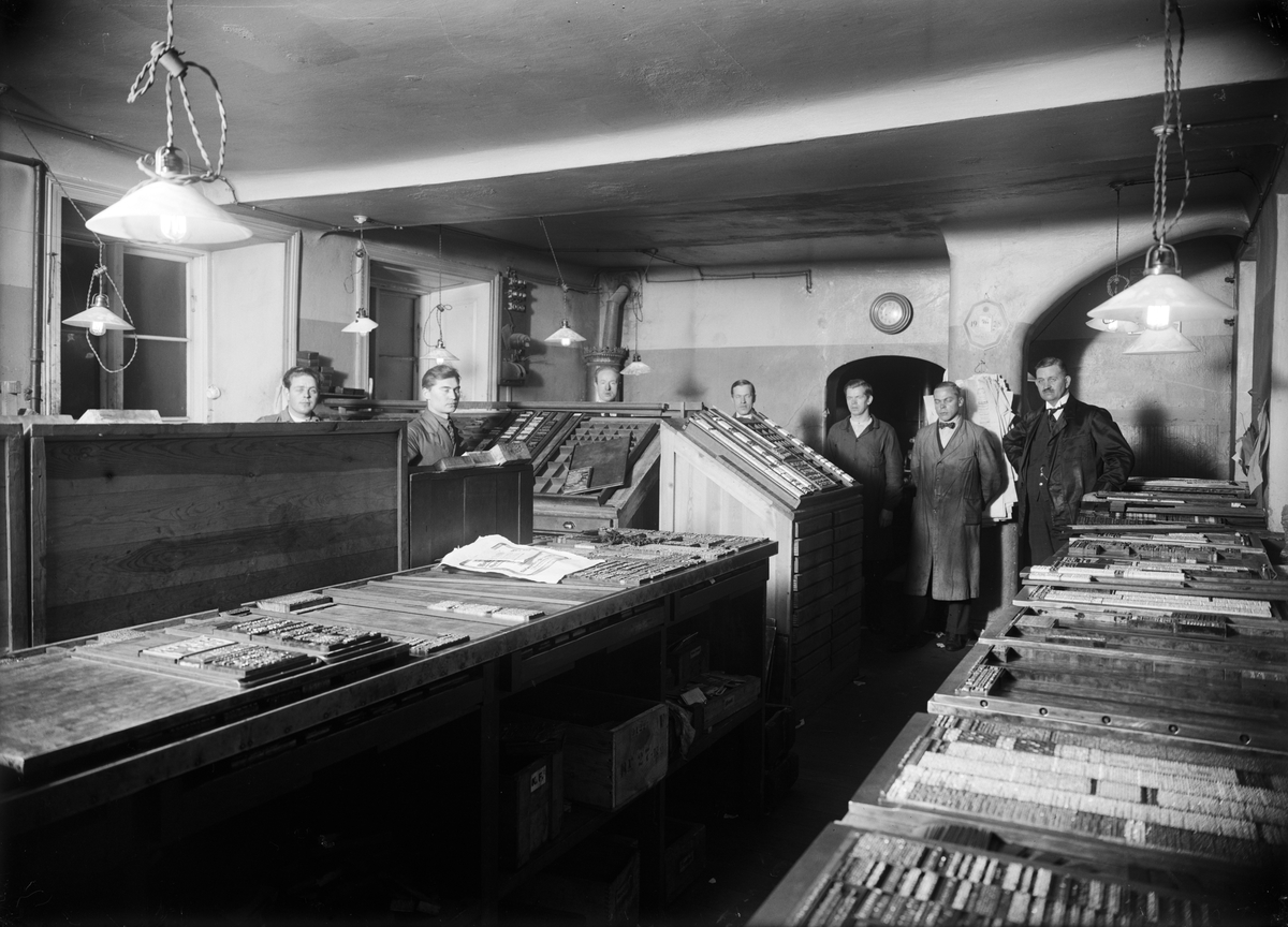 Upsala Nya Tidnings sätteri i Oxenstiernska huset vid Riddartorget, Uppsala före 1928