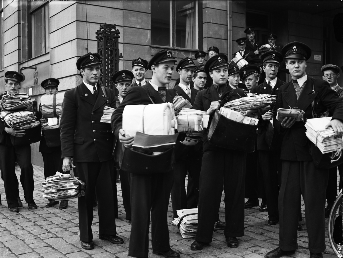 Brevbärare utanför postkontoret på Kungsängsgatan 19