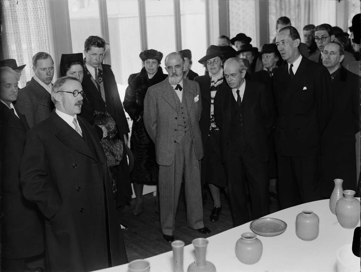 "Nyttan och skönheten höra väl tillsammans" - landshövding Sigfrid Linnér inviger Konsthantverkarnas Gilles och Upplands Konstförenings utställning på Flustret, Uppsala mars 1942