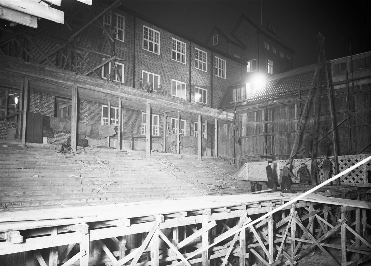 Centralbadets simhall under byggnation, Östra Ågatan, Uppsala december 1940