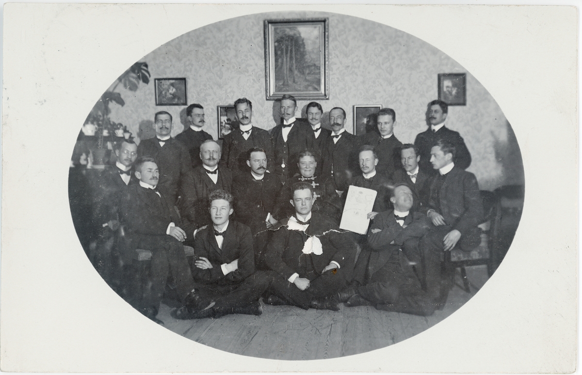 Studenterna på Norrbyska studenthemmet, i mitten husmor Ninni Anderberg, Uppsala 1905
