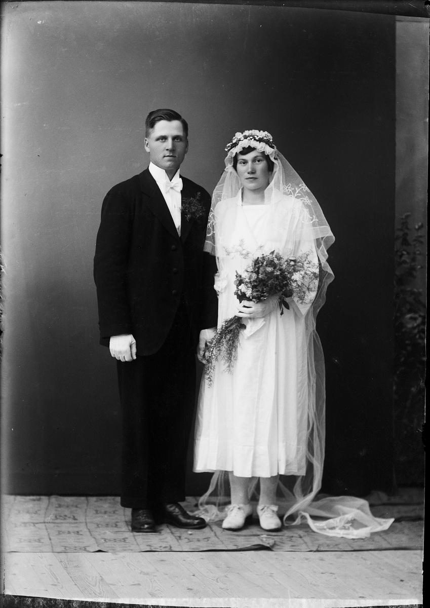 Brudparet Andersson från Uppskedika, Hökhuvud socken, Uppland 1923