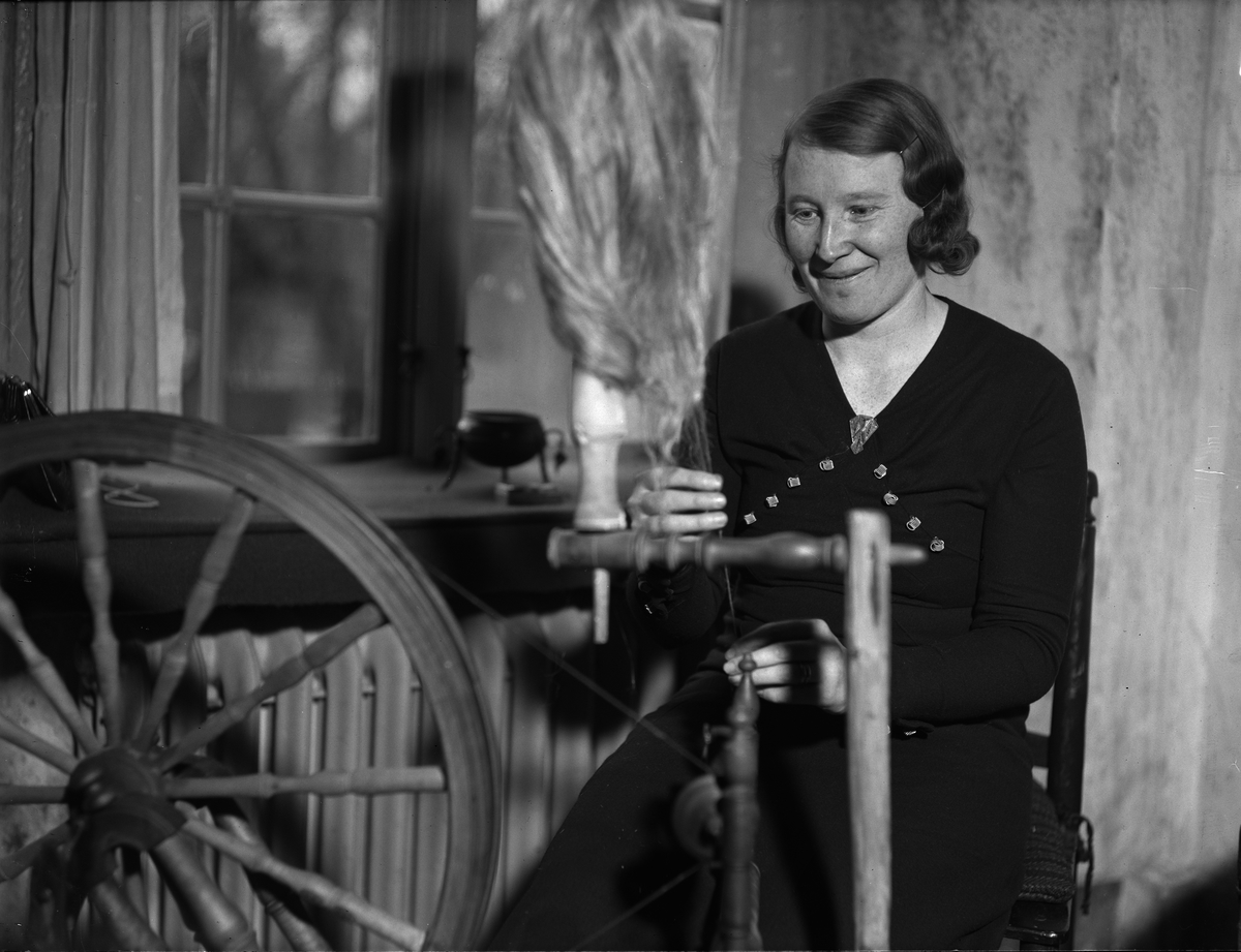 Greta Svensson från Åkerlänna, vinnare i Jordbrukare-Ungdomens Förbunds linspånadstävling på Salsta slott