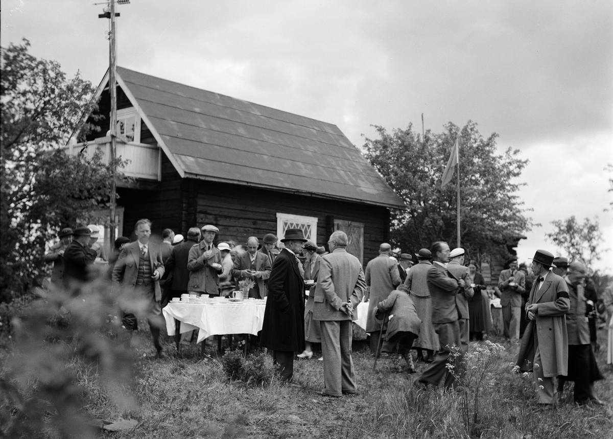 Medlemmar i Upplands fornminnesförening och Naturskyddsföreningen har kaffepaus i Billhamn, Älvkarleby