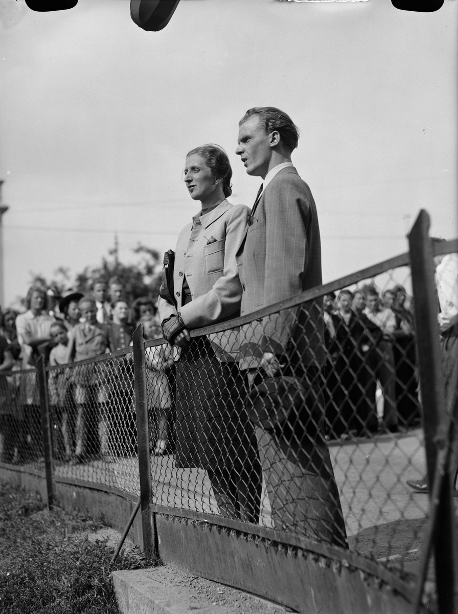Mannekängen E Kalling och skådespelaren Lars Lindberg vid Svandammen, Europafilm AB:s inspelning av reklamfilm för Mia Nilssons Kappaffär