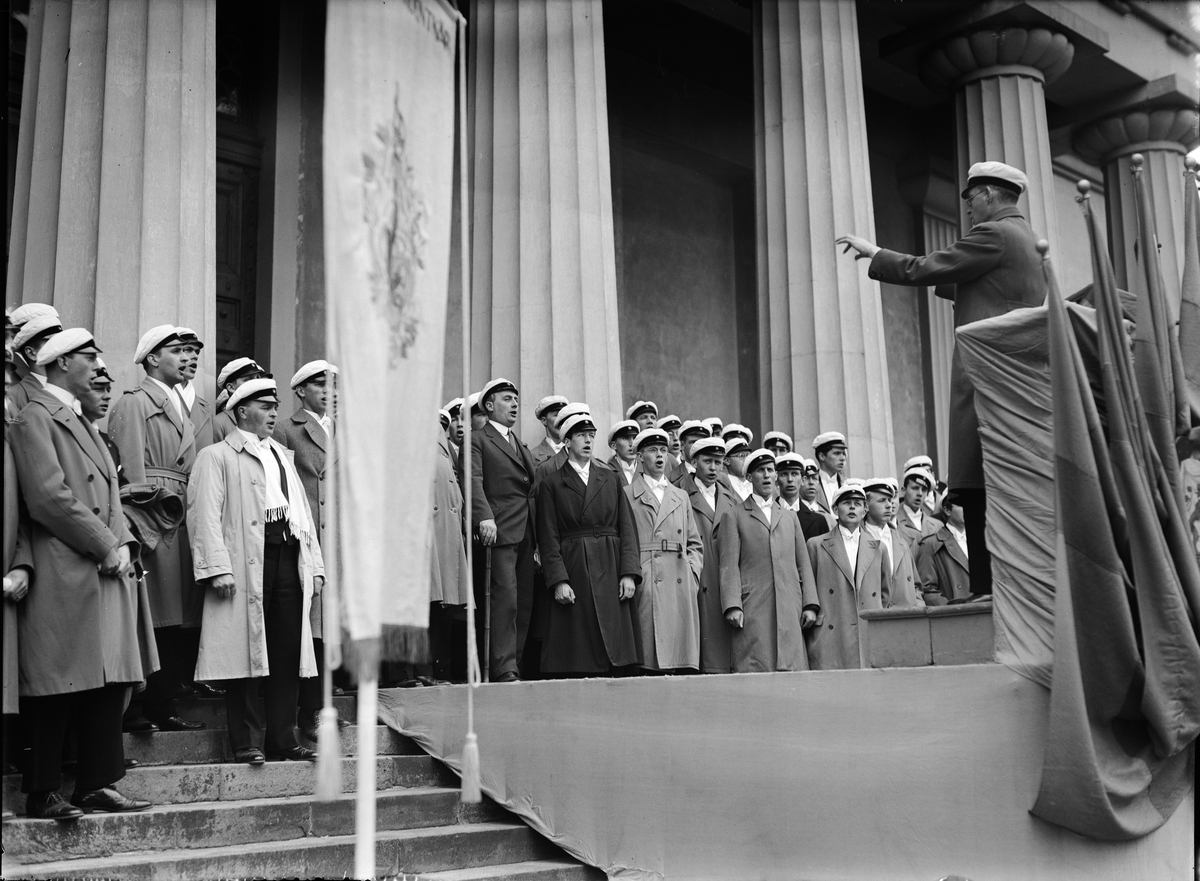 Allmänna sången sjunger vårsånger på Uppsala studentkårs vårfest i Botaniska trädgården