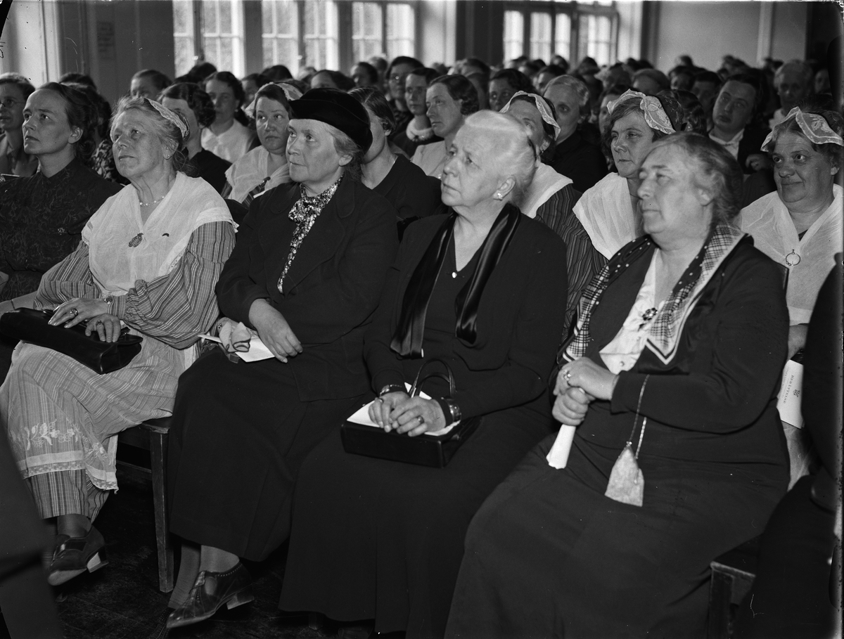 Uppsala läns Husmodersförbund har möte i Fackskolan för huslig ekonomis stora sal, Trädgårdsgatan 14