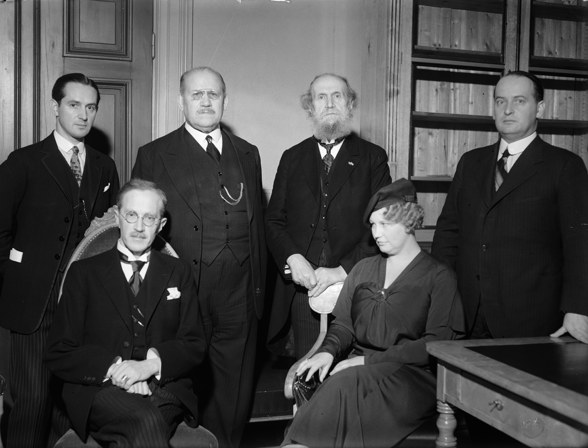 Professorerna Gunnar Gunnarsson, Gunnar Rudberg, Richard Ekblom och Zielinski samt minister Anton Roman och hans hustru på föreningen Polonias möte i Universitetshuset