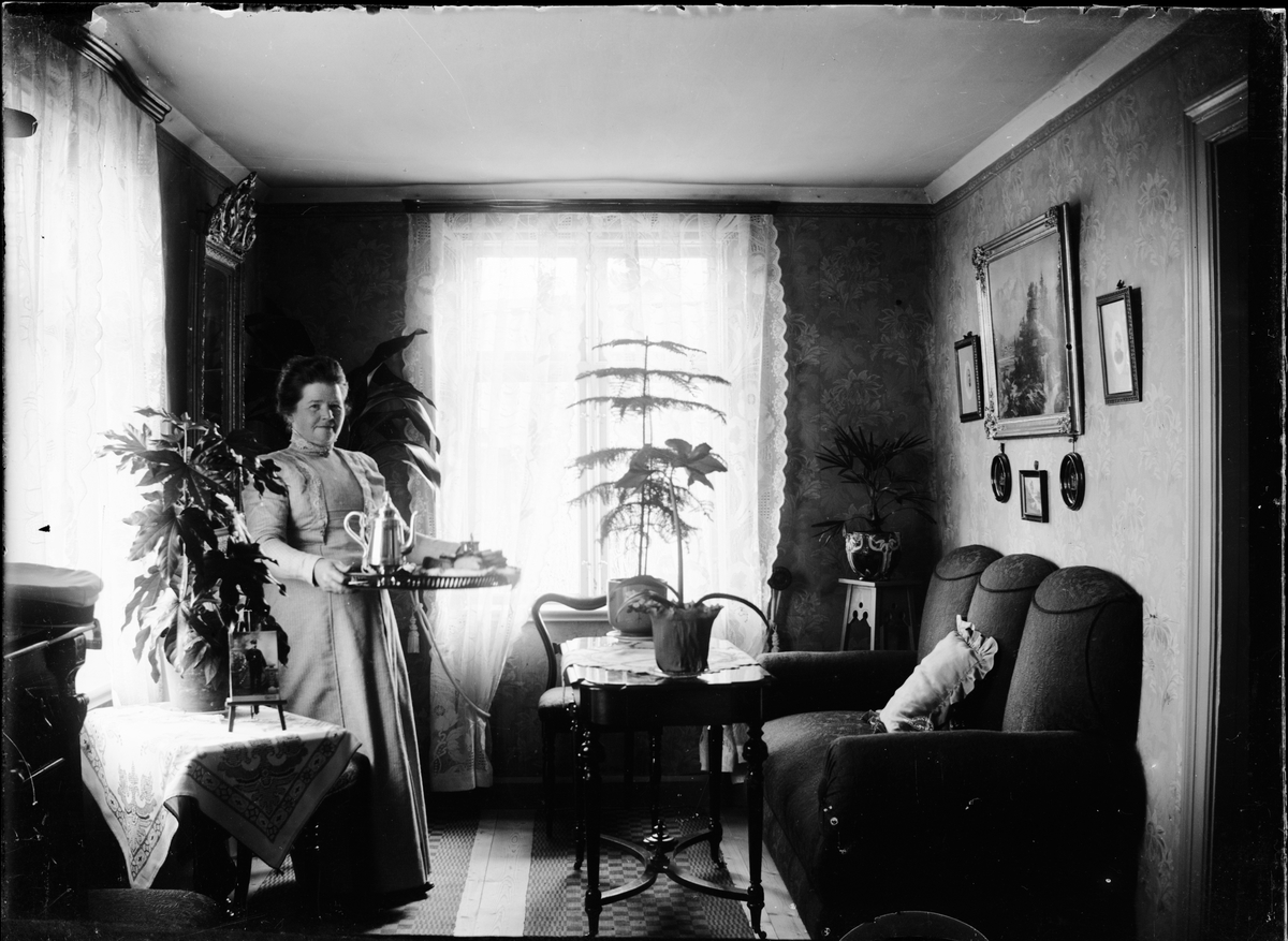 Mathilda Lilja med kaffebricka, Östhammar, Uppland
