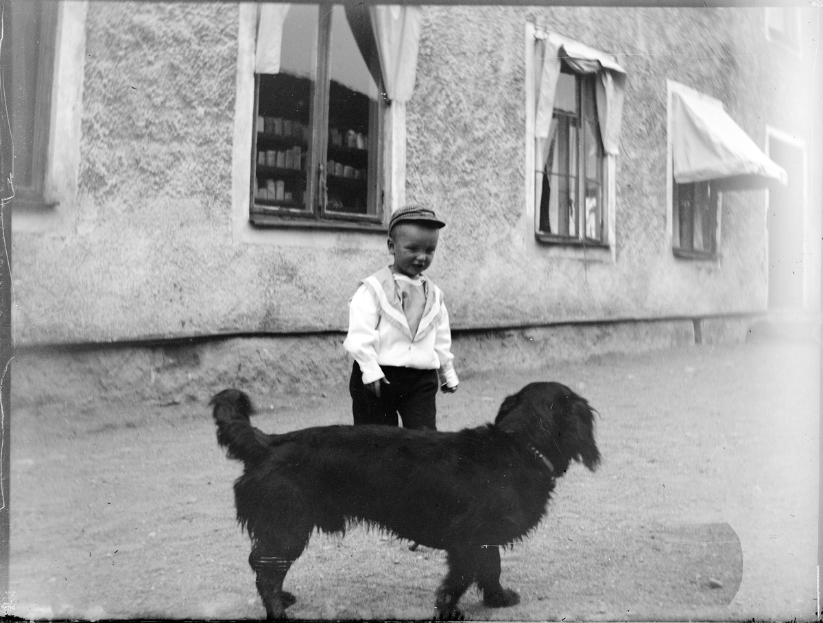 Ivar Liljefors och hunden Jack, Svartbäcksgatan 37, kvarteret Edda, Uppsala 1900 - 1901