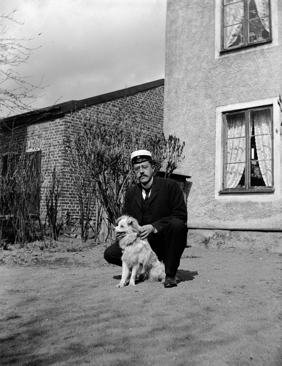 Andreas Grill och hunden Lasko, kvarteret Edda, Svartbäcksgatan 37, Uppsala 1900 - 1901