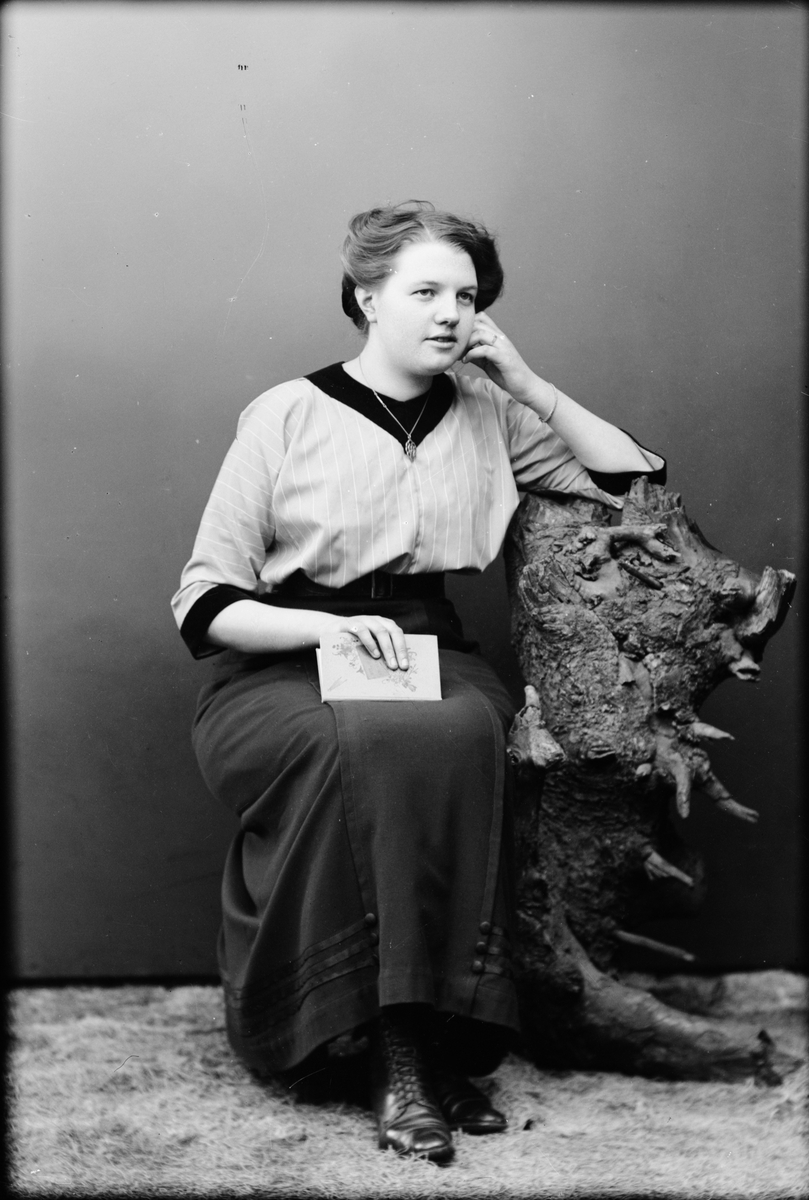Ateljéporträtt - kvinna med bok i knät, Östhammar, Uppland