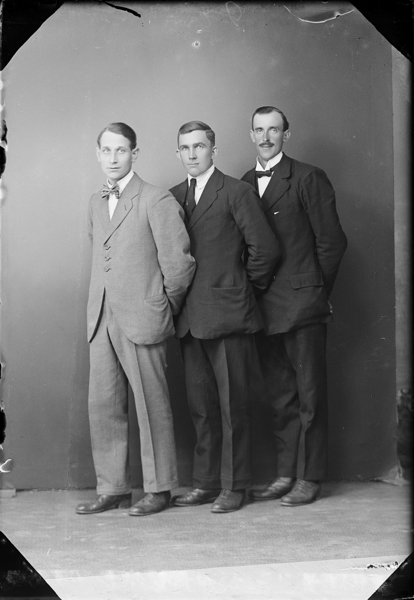 Hugo Andersson och två män från Hermansbo, Forsmark socken, Uppland, 1923