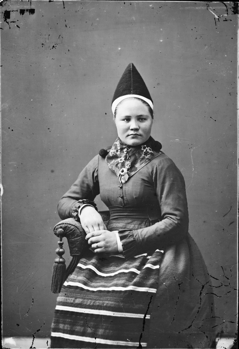Brita Hansdotter, senare gift Skötsner, klädd i Rättviksdräkt