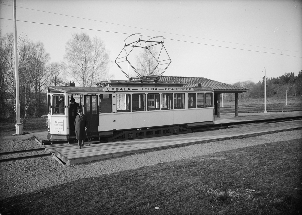 Spårvagn på Granebergslinjen, ändstationen vid Graneberg, Uppsala augusti 1928