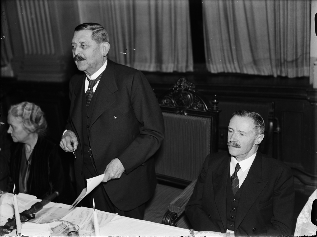 "Upländsk hembygdsrörelse står starkare än någonsin" -ålderman direktör Gustaf Åkerlind talar på Disagillet, Östgöta studentnation, Uppsala 1943