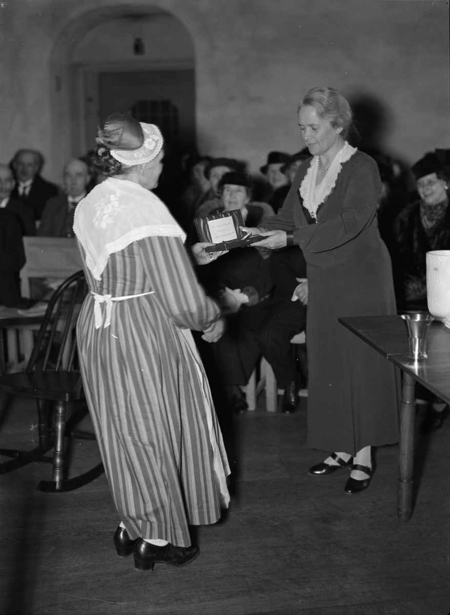 Elisabeth Linnér delar ut priser vid invigningen av Uppsala läns husmodersförbunds hemslöjdsutställning, Rikssalen, Uppsala slott