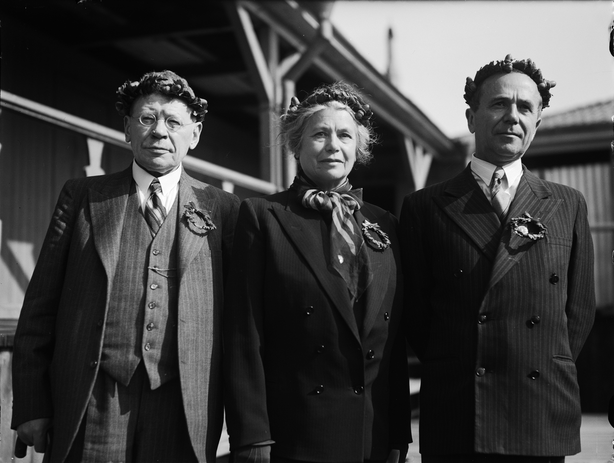 Direktör E V Sahlberg, rektor Anna Schenström och revisor H Rosander, dagens jubelmagistrar på Fyrisbadet