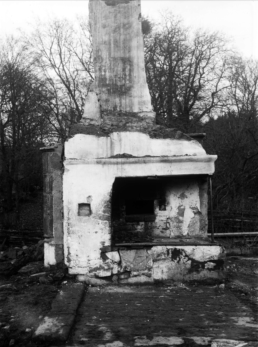 Mangårdsbyggnadens spismur och murstock, Kvekgården, Fröslunda socken, Uppland 1933