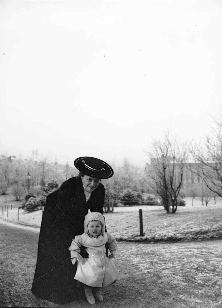 Christiane Liljefors med barn i park, sannolikt i Sverige