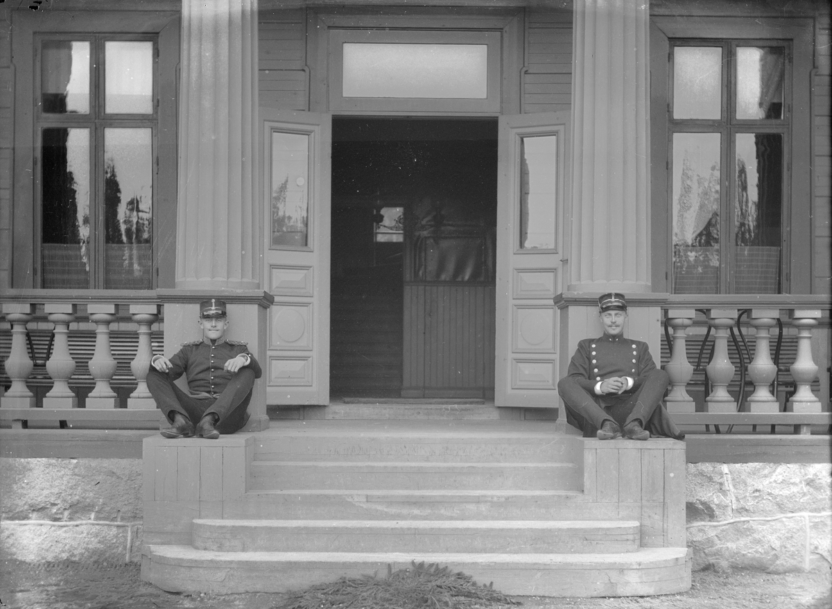 Officerare utanför huvudbyggnaden, Marma läger, Älvkarleby socken, Uppland före 1914