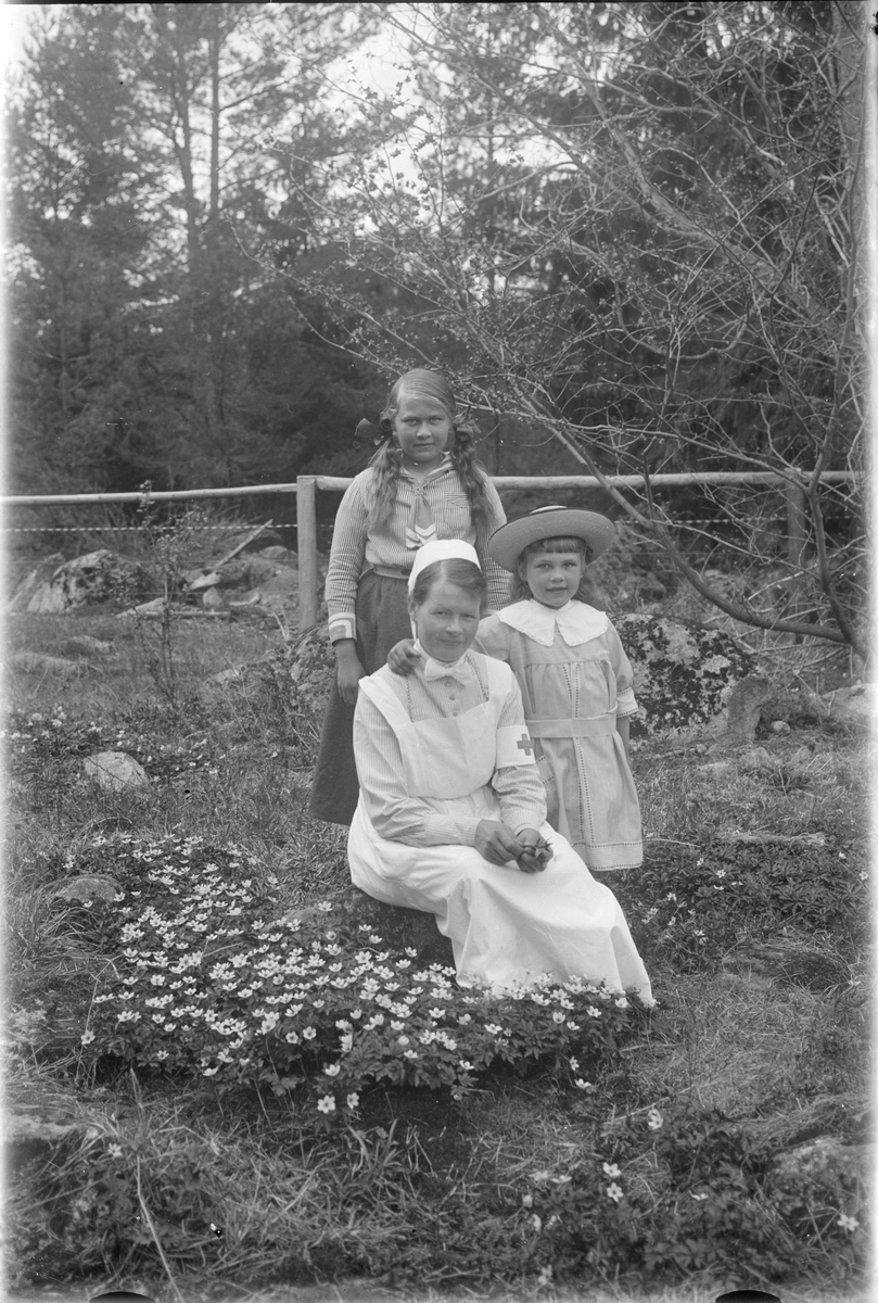 Två flickor och sjuksköterska vid Vattholma sanatorium, Uppland