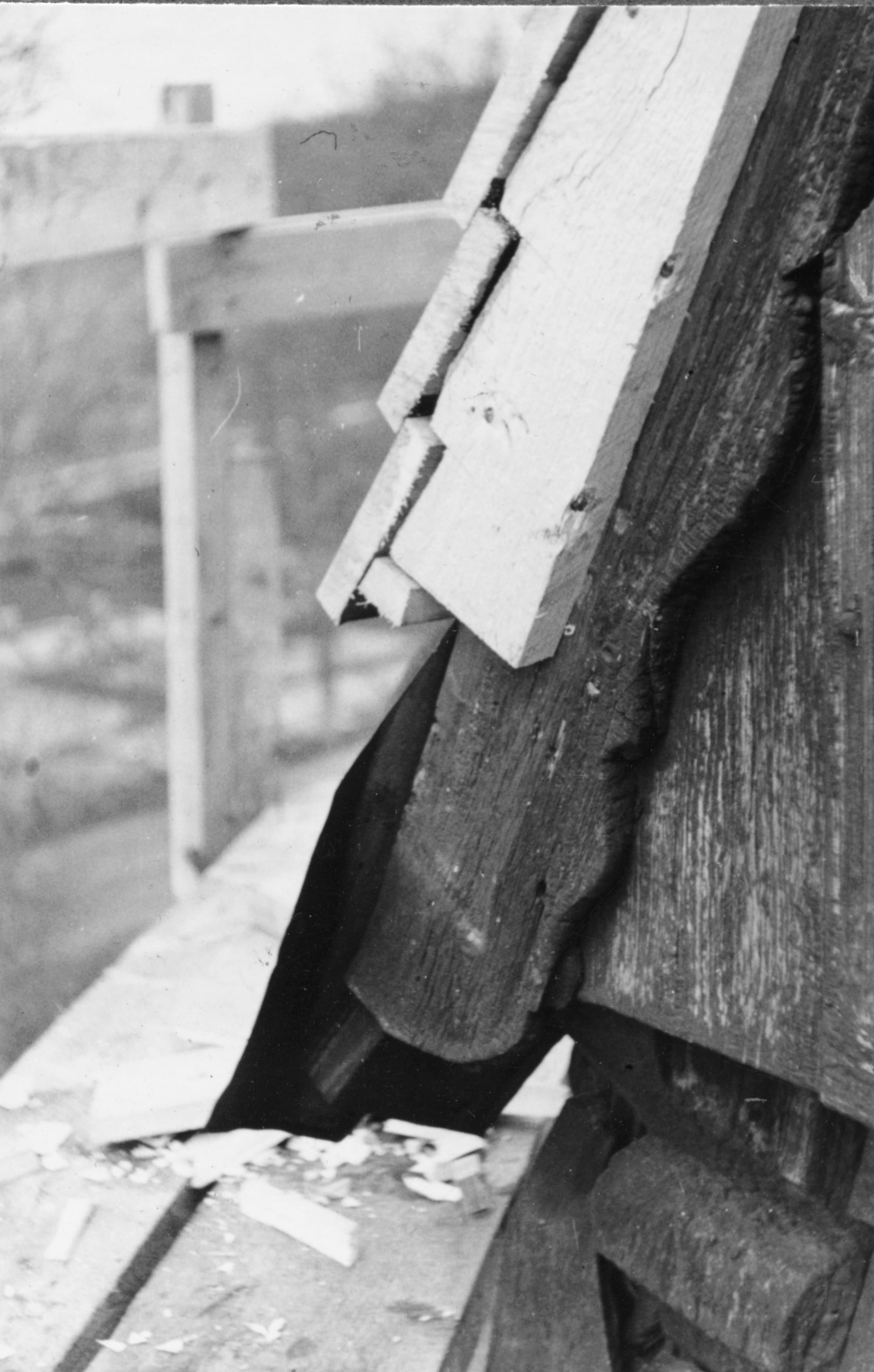 Klockstapeln, Ö. gavelröstets N. vindskiva. Drakhuvudet saknas.