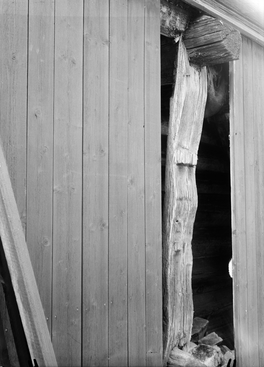 Stödplanka under loftet, ekonomibyggnad, Fäcklinge, Tierps socken, Uppland 1934