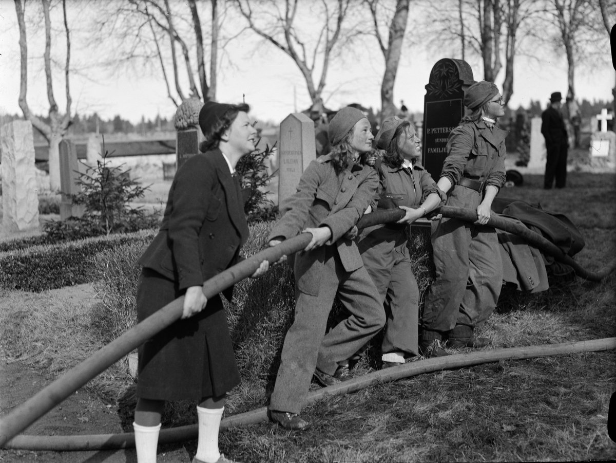 Brand i Bälinge kyrka, Uppland 1941 - "luftspaningsflickor i ivrigt hjäparbete"