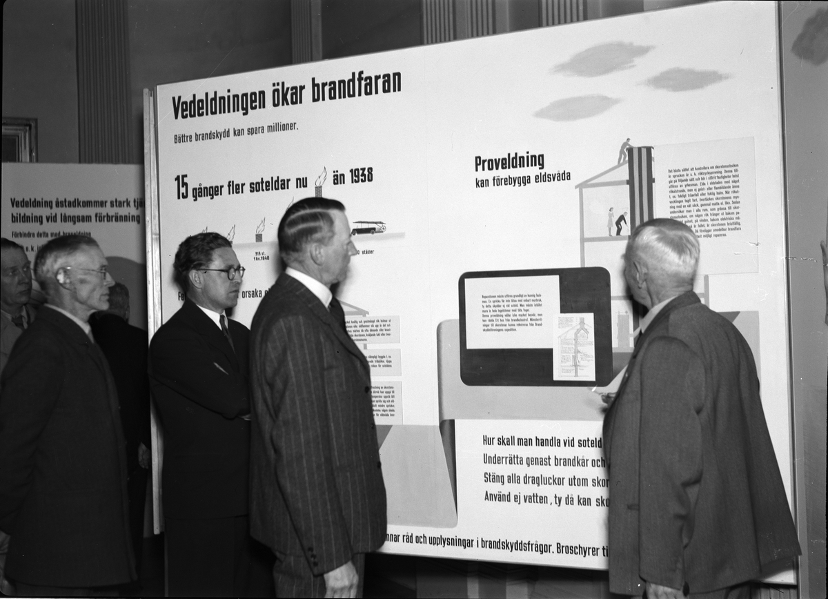 Besökare på invigningen av Statens Bränslekommissions utställning "Varm bostad med mindre bränsle", Göteborgs studentnation, Drottninggatan 7