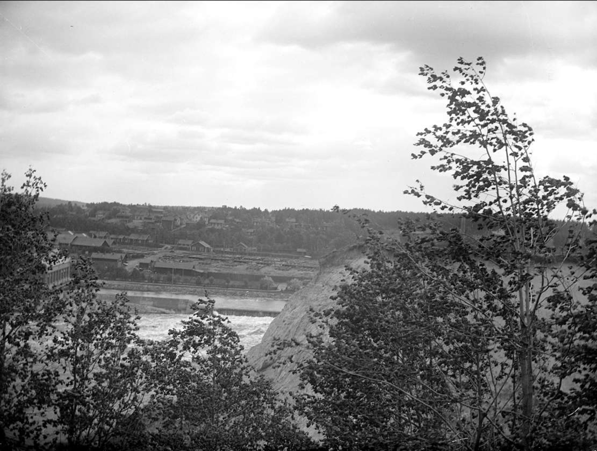 Landskapsvy med bebyggelse, sannolikt i Dalarna, juni 1915