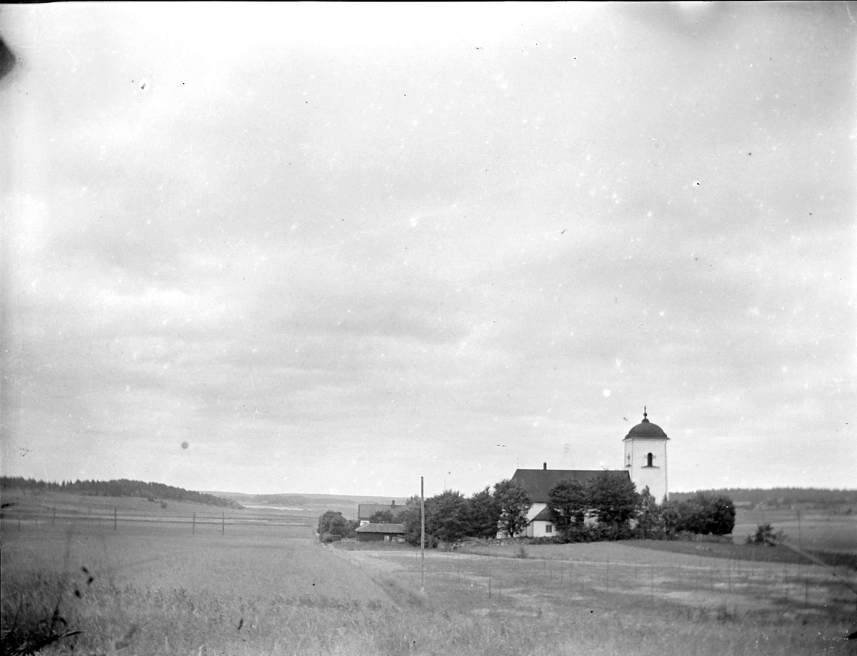 Landskapsvy med Vassunda kyrka, Uppland 1920