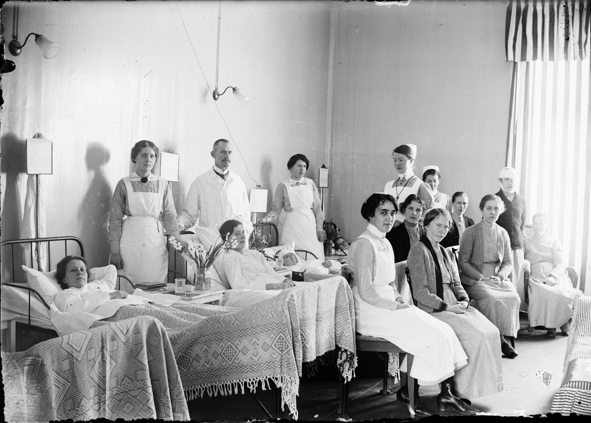 Sjuksal med patienter och sjukvårdspersonal, Östhammars lasarett, Uppland