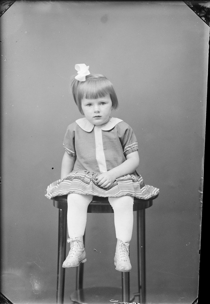 Ateljéporträtt - liten flicka sitter på en pall, Östhammar, Uppland