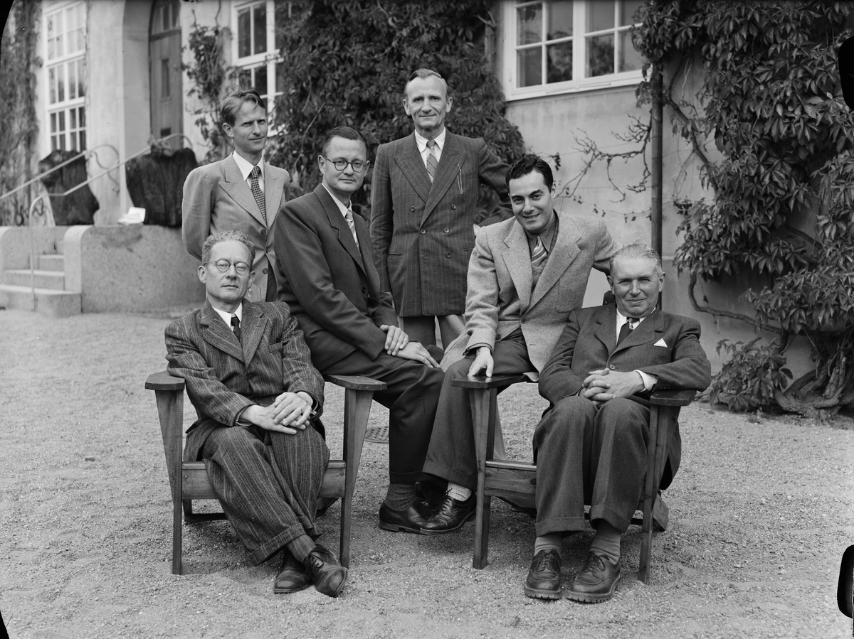 Titel: Grupporträtt - män, sannolikt Uppsala, 1950