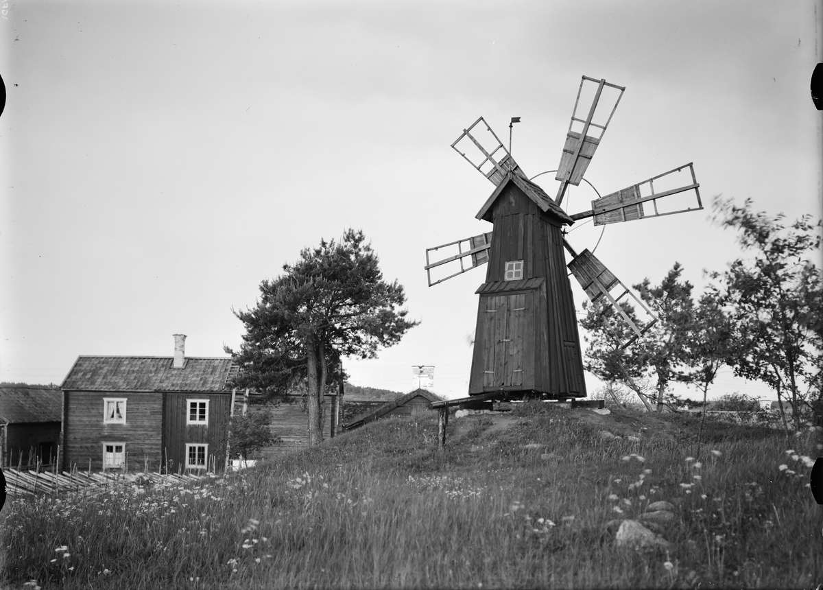 "Disagårdens senaste förvärv, väderkvarnen från Ramsta, står nu fullt färdig på kullen inom området"