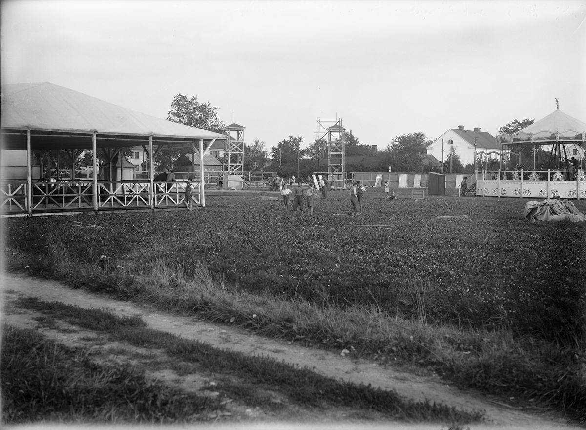 Titel: Förberedelser inför Uppsalas första idrottsmässa, festplatsen i Svartbäcken