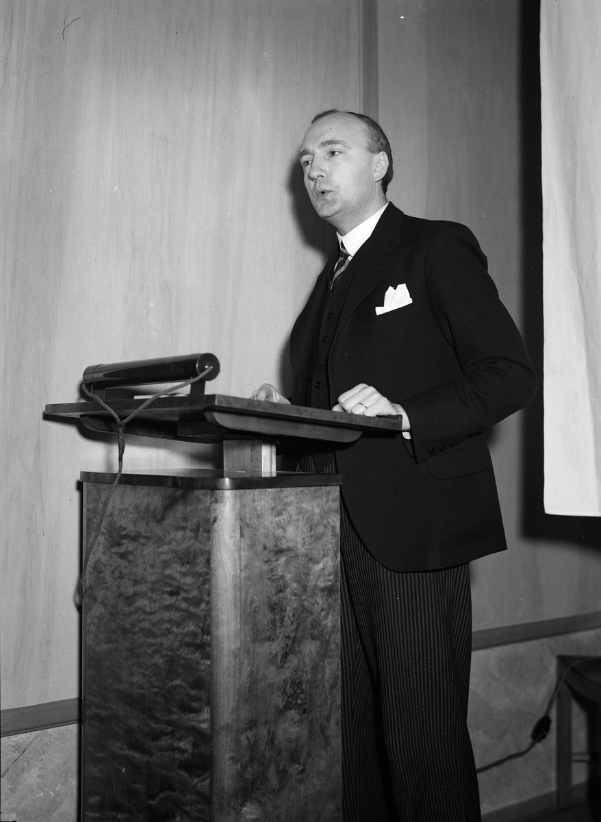 Intendent Nils Ålenius föreläser om "forna tiders julfirande" i Uppland på Uppsala Ålderdoms- och Sjukhem, Svartbäcken