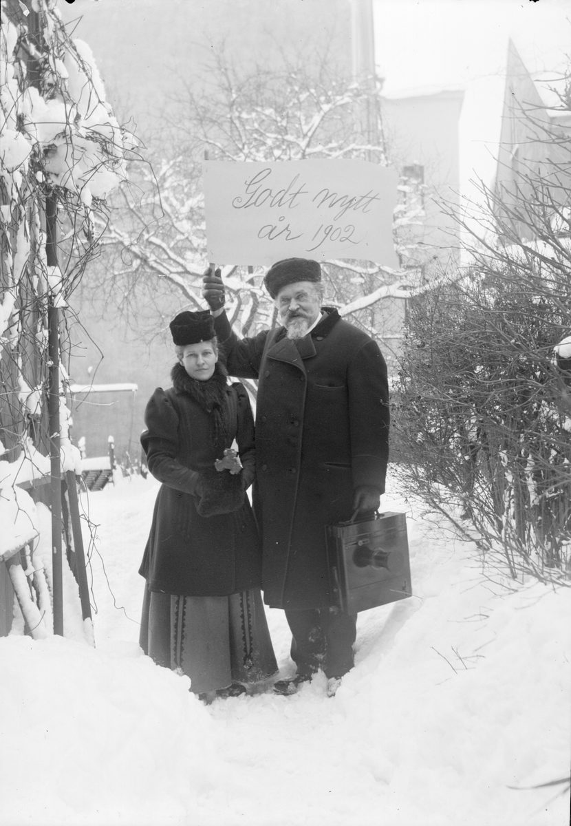 Emma och Henri Osti med nyårshälsning, Uppsala 1902